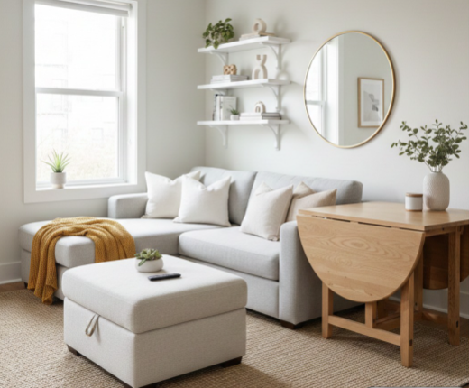 In a small living room, every piece of furniture should serve more than one purpose. Multi-functional furniture such as sofa beds, storage ottomans, nesting tables, or coffee tables with drawers helps maximize space without adding clutter. A sofa bed allows the room to double as a guest area, while an ottoman with hidden storage can hold blankets, books, or toys. Foldable or extendable tables can be tucked away when not in use. These smart furniture choices reduce overcrowding, maintain a clean look, and allow the living room to remain both stylish and highly practical.