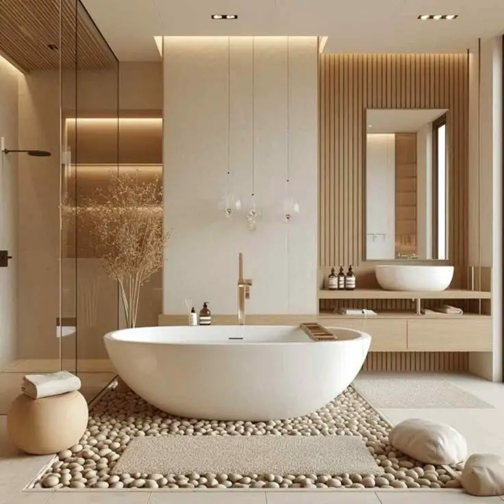 Incorporate materials like wood, bamboo, stone, and pebbles to evoke a sense of calm. Use neutral colors—beige, taupe, and soft greens—to create a warm, grounded ambiance. Add indoor plants like ferns or aloe vera for freshness and air purification. These elements mimic nature and offer a sensory escape that feels like a high-end spa.