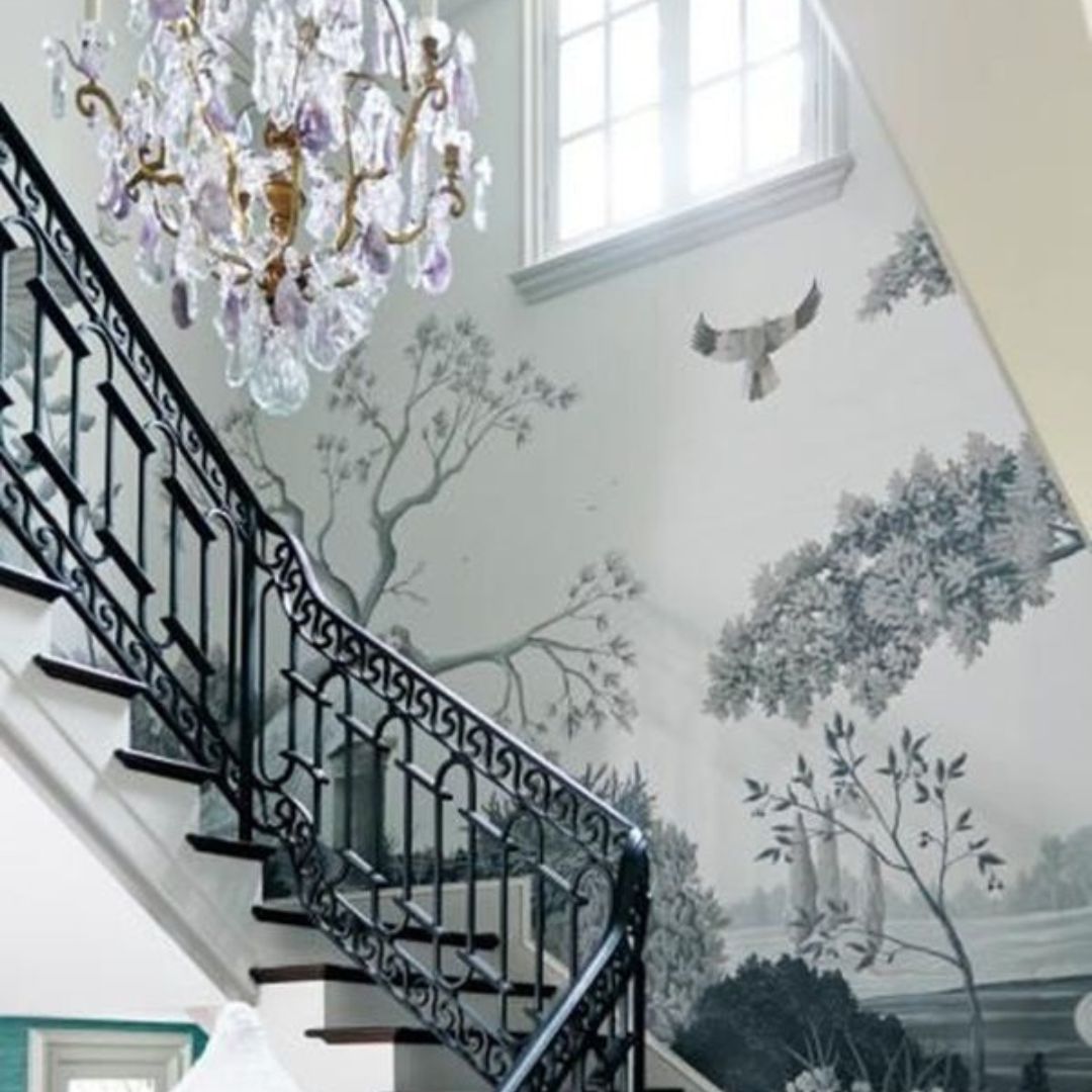 Mural-style wallpaper turns staircase walls into an artistic canvas. Scenic landscapes, abstract art, or hand-painted-style designs create a storytelling effect as you move up the stairs. Murals add personality and uniqueness, making the staircase a memorable feature rather than a transition zone. Choose designs that flow naturally upward to match the staircase movement. This idea works beautifully in creative homes, lofts, or spaces that embrace bold design choices. Keep surrounding décor minimal to allow the mural to stand out.