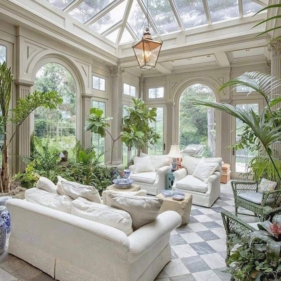 Transform your sunroom into a sophisticated tea room. Choose vintage-inspired furniture like tufted chairs, a round table, and a dainty serving cart. Add lace curtains or light drapes for a romantic touch. Decorate with floral china, candles, and pastel cushions. Incorporate potted roses or lavender for a fragrant atmosphere. This sunroom is ideal for hosting afternoon tea with friends or enjoying quiet moments of elegance alone. It combines natural sunlight with a refined aesthetic, creating a cozy yet graceful environment that feels timeless and special.