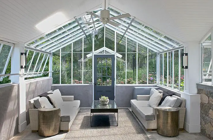 Highlight the architecture of your sunroom with floor-to-ceiling glass panels, clean-lined furniture, and minimal décor. Stick to a monochrome or two-tone palette, such as black and white or gray and beige. Sleek sofas, geometric rugs, and metallic accents give the space a modern vibe. Motorized blinds or smart glass provide privacy when needed. This sunroom doubles as a stylish lounge for entertaining guests, enjoying sunsets, or stargazing at night. It’s ideal for city dwellers who want a chic, contemporary extension of their home while still enjoying maximum natural light and views.