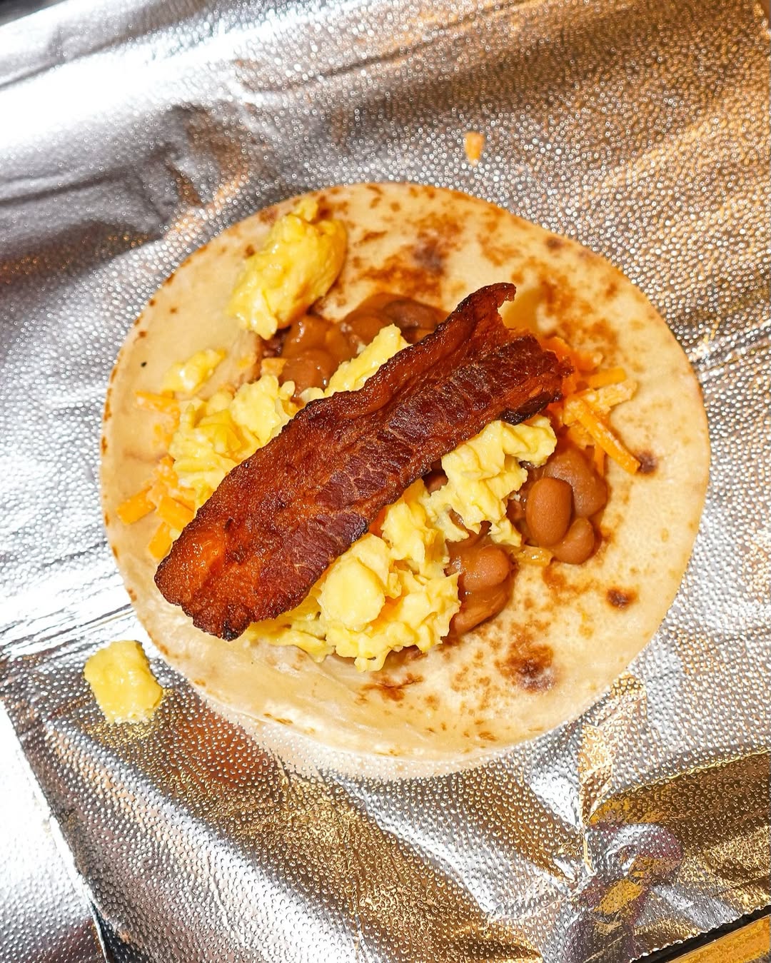 • Description: A Tex-Mex morning favorite — savory sausage with scrambled eggs, cheese, and salsa wrapped in a tortilla.