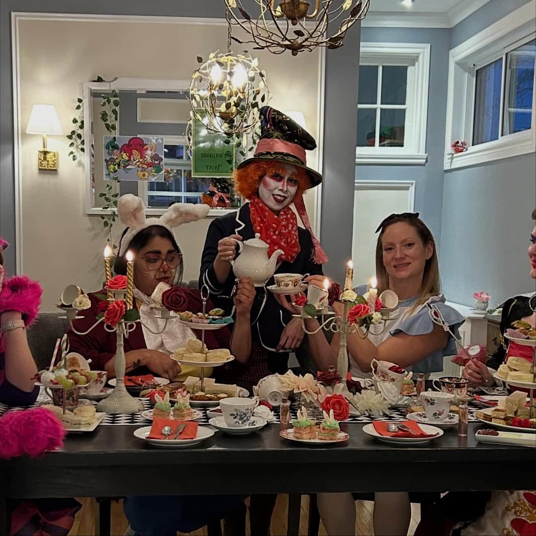 Bring Wonderland to life with whimsical mismatched teacups, bold colors, and eccentric decorations. Think playing cards, pocket watches, and vintage clocks scattered around the table. Serve colorful teas like butterfly pea flower, hibiscus, and fruit infusions. Food can include miniature cupcakes, “Eat Me” cookies, and rainbow sandwiches. Encourage guests to dress as their favorite Alice in Wonderland characters. The playful, topsy-turvy theme invites laughter and creativity—ideal for birthdays or children’s events. Add quirky signage like “This Way” and “That Way” arrows, and let imagination guide every detail for an unforgettable fantasy tea experience.