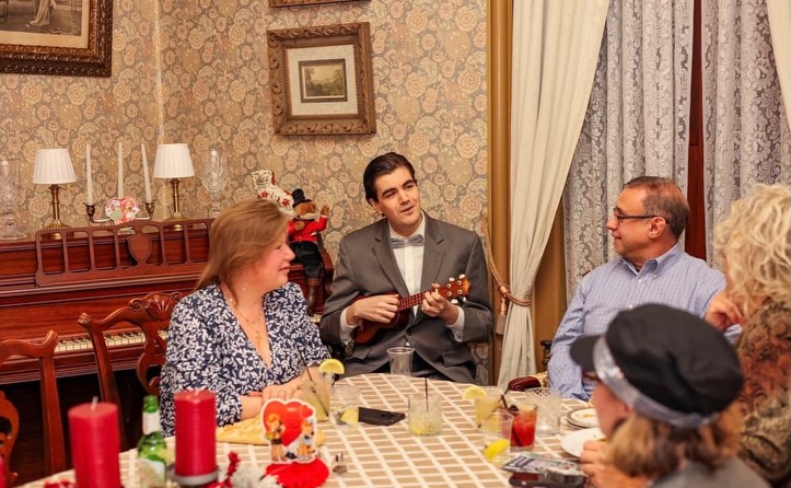 Host an elegant masquerade inspired by the lavish ballroom scene in The Phantom of the Opera. Decorate with rich jewel tones like burgundy, navy, and gold. Provide decorative masks at the entrance or ask guests to bring their own. Use candlelight, chandeliers, and dramatic drapery for ambiance. Serve champagne and hors d’oeuvres such as stuffed mushrooms and mini quiches. Classical or instrumental music enhances the mysterious mood. You can add a “Best Mask” contest or a dramatic reveal moment at midnight for extra excitement and engagement.