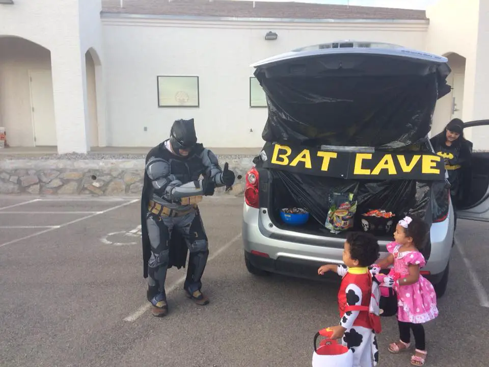 Design your trunk like a superhero base or comic book scene using cityscape backdrops, “POW!” and “BAM!” signs, and cardboard buildings. Include logos of famous heroes like Batman, Spider-Man, or Wonder Woman. Dress up as your favorite superheroes and invite kids to pose for pictures. Offer superhero masks or stickers as small gifts. Hand out “super snacks” or “kryptonite candy.” Include a “hero training course” with simple obstacles like cones or hoops. It’s a crowd-pleasing, action-packed idea for all ages.