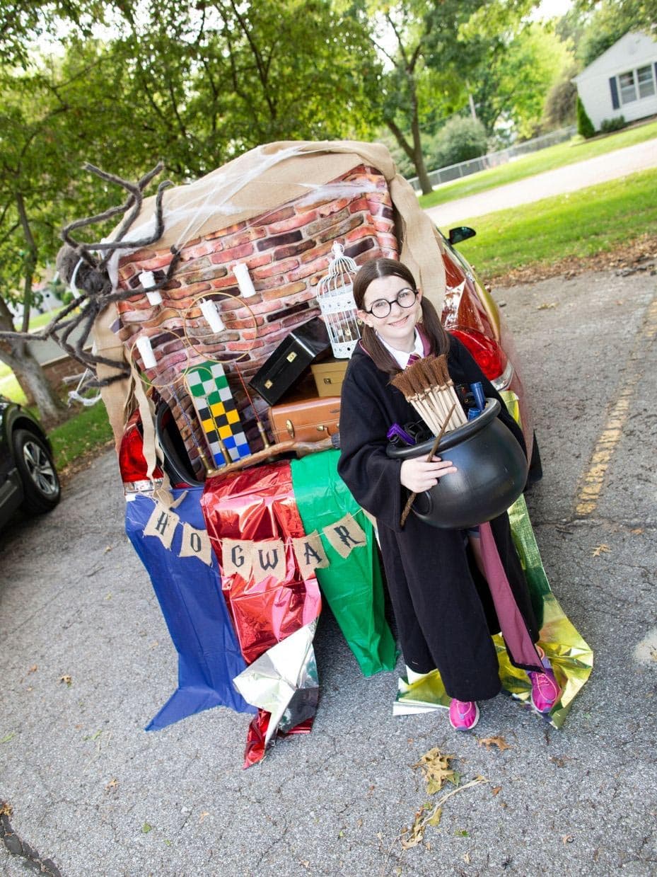 Inspired by Harry Potter, decorate your trunk as a magical classroom or Diagon Alley. Use house banners, floating candles (hung with string), potion bottles, and spellbooks. Include a sorting hat activity where kids “get sorted” before receiving candy. Dress as wizards, witches, or specific characters like Dumbledore or Hermione. Offer “magical” candy like chocolate frogs or jelly beans. Set up a wand station where kids get a wand (pencil or stick) as a souvenir. This theme is highly interactive and nostalgic for parents and fun for all ages.
