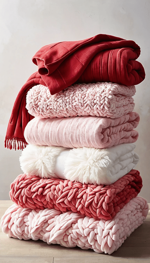 - Design: Drape throw blankets in romantic hues over couches, armchairs, or the foot of a bed.