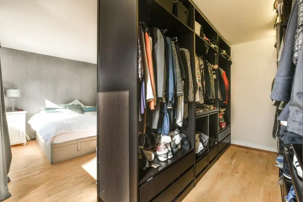 Showcase your wardrobe and accessories with open shelving. This style emphasizes visibility and easy access, encouraging you to keep everything tidy. Arrange clothing by color or category for visual impact. Use decorative bins and baskets for small items, and include shelves for shoes, bags, and folded garments. LED strip lighting under shelves enhances the display. This concept suits fashion-forward individuals who treat clothing as part of the decor.