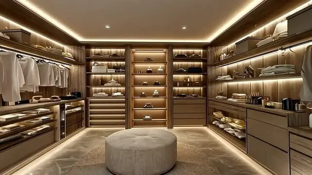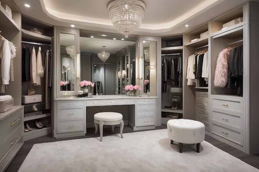 Walk In Closet Ideas – A walk-in closet is more than just a storage space—it’s a personalized sanctuary for organizing clothing, shoes, accessories, and even beauty items. When designing or revamping a walk-in closet, consider functionality, aesthetics, and efficient use of space. One popular idea is to incorporate built-in shelving and customized drawers to neatly store folded garments and smaller items like jewelry, ties, or sunglasses. Full-length mirrors and proper lighting, especially LED strip or recessed lights, not only enhance visibility but also elevate the ambiance. You can install a center island with additional drawers if space allows, offering both style and storage. Adjustable hanging rods make room for various clothing lengths, from dresses to jackets. To maximize vertical space, consider overhead cabinets for seasonal storage. Adding a comfortable bench or an ottoman provides a place to sit while dressing. A walk-in closet can also feature a vanity corner with lighting and storage for makeup or grooming tools. Overall, the key is to blend convenience with elegance, making the closet both functional and luxurious.