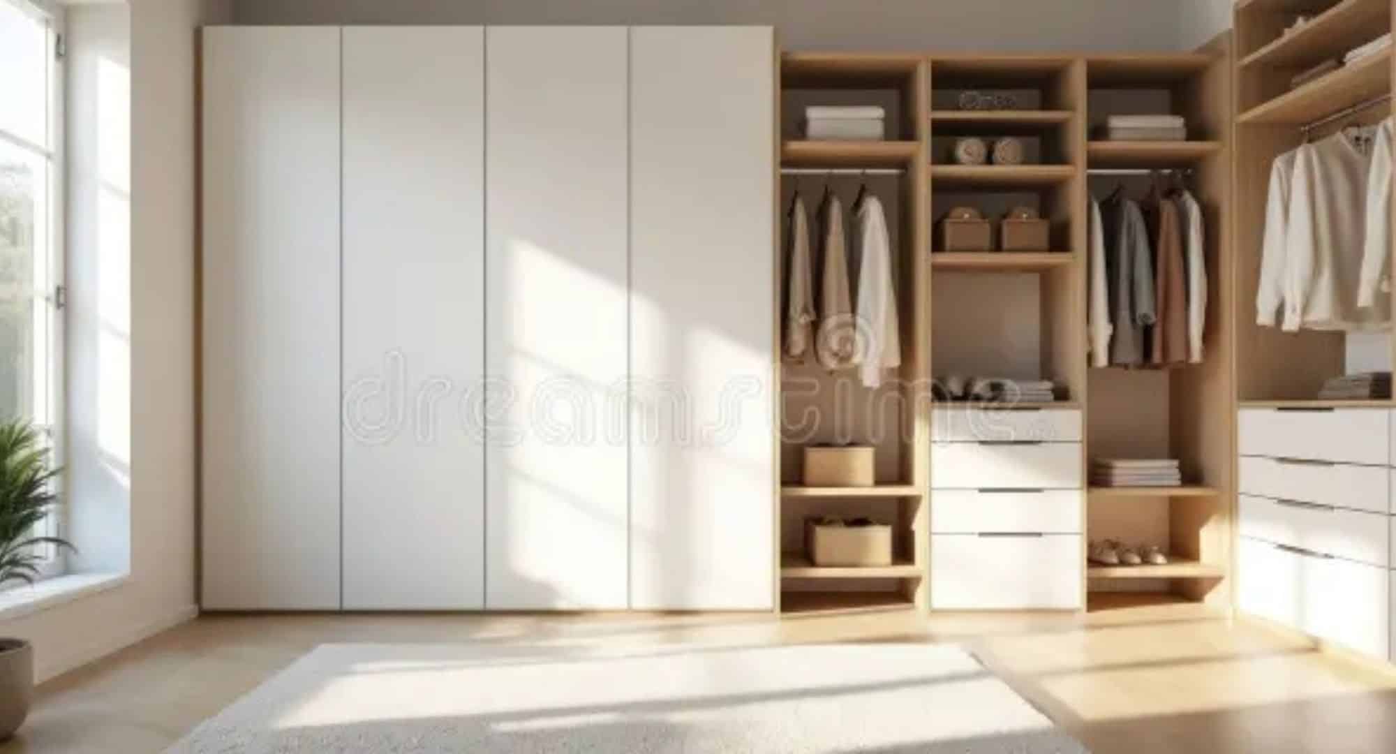 Embrace simplicity with a minimalist closet that uses clean lines, open shelving, and neutral tones. Prioritize functional storage with hidden drawers, baskets, and racks that keep clutter out of sight. Stick to a monochromatic color scheme to maintain a serene atmosphere. Integrated lighting and streamlined hardware keep the look cohesive. This style is ideal for those who prefer a tidy, Zen-like space where every item has a purpose and nothing feels overcrowded.