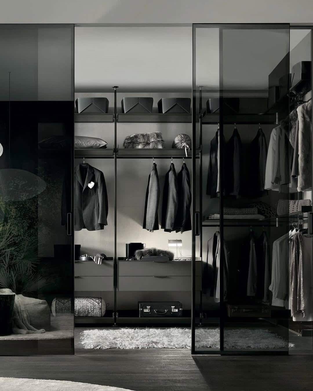Installing sliding glass doors on closet sections adds a sleek, modern look while keeping contents visible. It protects clothes from dust without hiding them away. Choose frosted, smoked, or clear glass depending on your style. Glass doors also reflect light, helping small or dark closets feel brighter and bigger. Paired with clean shelving and minimalist hardware, this design offers a polished, high-end finish to your walk-in closet.