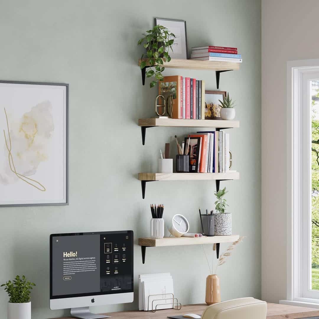 Floating shelves add both functionality and beauty to a wall. You can arrange them asymmetrically to display books, candles, plants, or framed photos. Choose wooden shelves for a rustic vibe or sleek black shelves for a modern look. Layer different shapes and heights for depth. Add LED strip lighting underneath for a soft glow in the evenings. These shelves make it easy to change your décor with the seasons—swap in flowers in spring or pinecones in winter. The best part? They keep your walls stylish while helping you stay organized without cluttering the space.