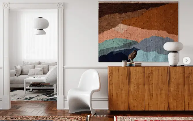 A woven tapestry or macramé hanging brings texture, warmth, and personality to your wall. Choose intricate bohemian patterns for a relaxed vibe or minimalist woven textures for modern elegance. These soft art pieces soften hard edges in a room, making it feel more inviting. Hang them above a bed, sofa, or hallway console. For added flair, use a driftwood rod or bamboo stick as the base. Tapestries are lightweight, easy to change, and perfect for renters since they don’t require heavy installations. They also help absorb sound, adding both aesthetic and acoustic comfort to your space.