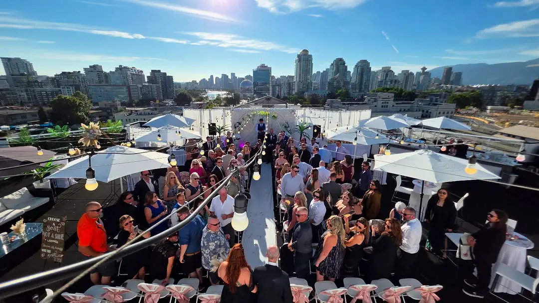 A rooftop ceremony offers dramatic skyline views, modern architecture, and an elevated urban atmosphere. Floating candles, sleek chairs, and minimalist floral arrangements enhance the contemporary vibe. As day turns into evening, twinkling city lights create a magical backdrop perfect for photography. This idea suits modern couples who love the buzz of the city and want a chic, sophisticated setting. Guests enjoy panoramic views, stylish cocktails, and a celebratory cosmopolitan mood. Rooftop ceremonies effortlessly blend glamour with intimacy while showcasing the beauty of the surrounding metropolis.