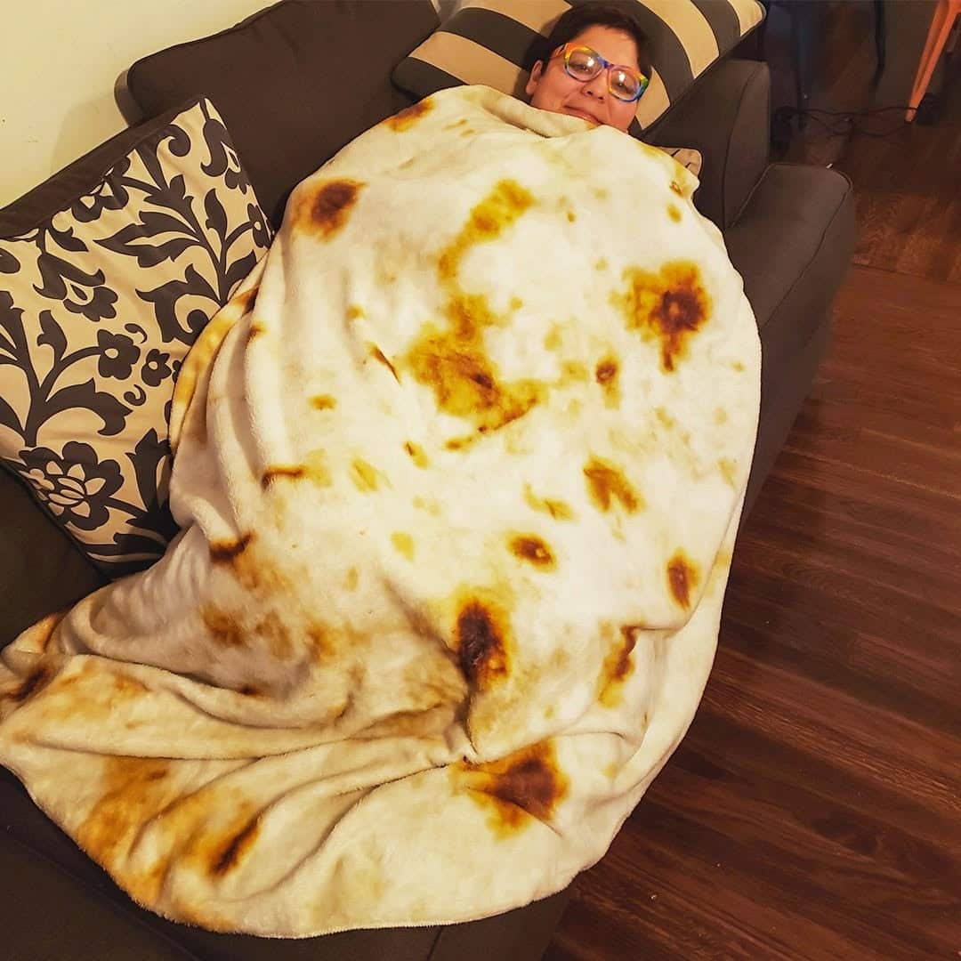 A large, round fleece blanket printed to look exactly like a giant tortilla. Wrap yourself up in it, and you instantly become a cozy human burrito. It’s surprisingly warm and soft, so it doubles as a genuinely useful blanket. The absurdity comes from seeing a grown adult rolled up like lunch. The burrito blanket has become an internet sensation for good reason—it’s both hilarious and practical. In a White Elephant gift exchange, it will almost certainly be “stolen” more than once because everyone wants to try it.